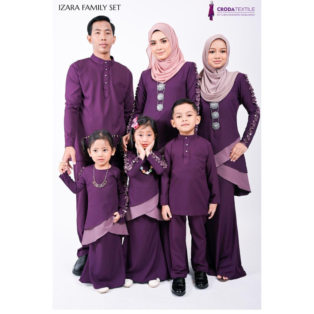 New Arrival Sedondon Raya 2020 Family Set Izara Purple Color Set Melayu Clothes And Kurung Suami Isteri Sedondong Shopee Singapore